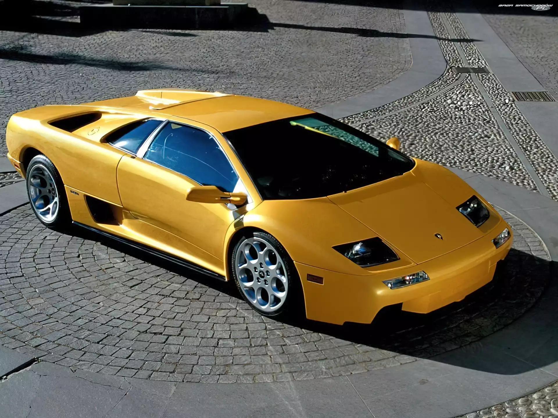 , Srebrne Lamborghini Diablo VT 6.0 SE, 2001 Czerwone, Lamborghini Diablo Lamborghini Diablo, Plac, Brukowa, Kostka