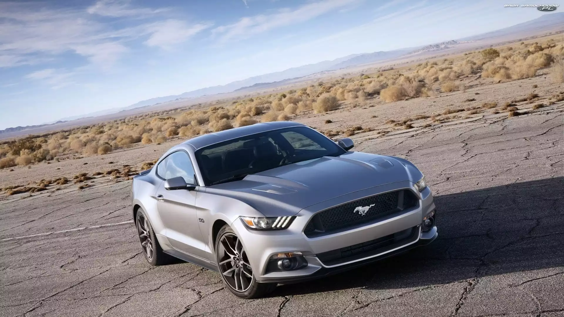 Mustang, Pustynia, Ford, Droga- Zdjęcia samochodów