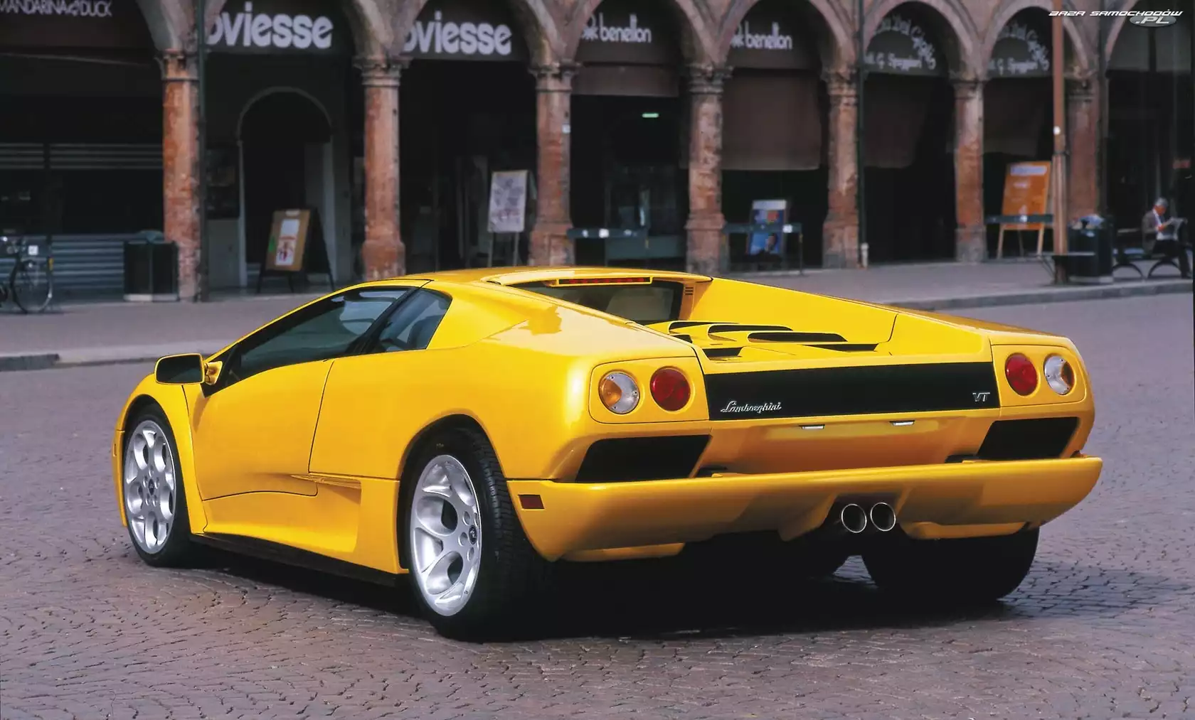 , Srebrne Lamborghini Diablo VT 6.0 SE, 2001 Czerwone, Lamborghini Diablo Lamborghini Diablo, Plac, Brukowa, Kostka